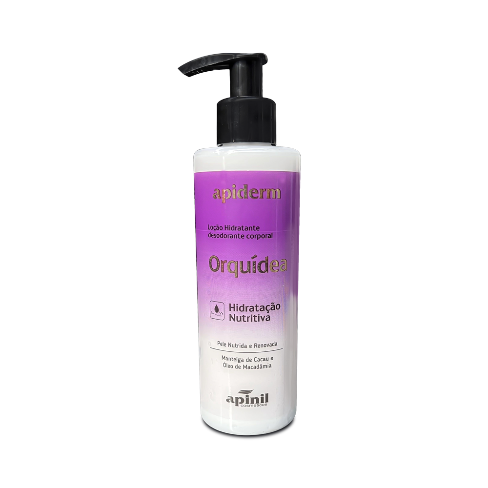 Loção Hidratante Orquídea tem em sua formulação manteiga de cacau de óleo de macadâmia, que ajuda na hidratação e nutrição da pele.