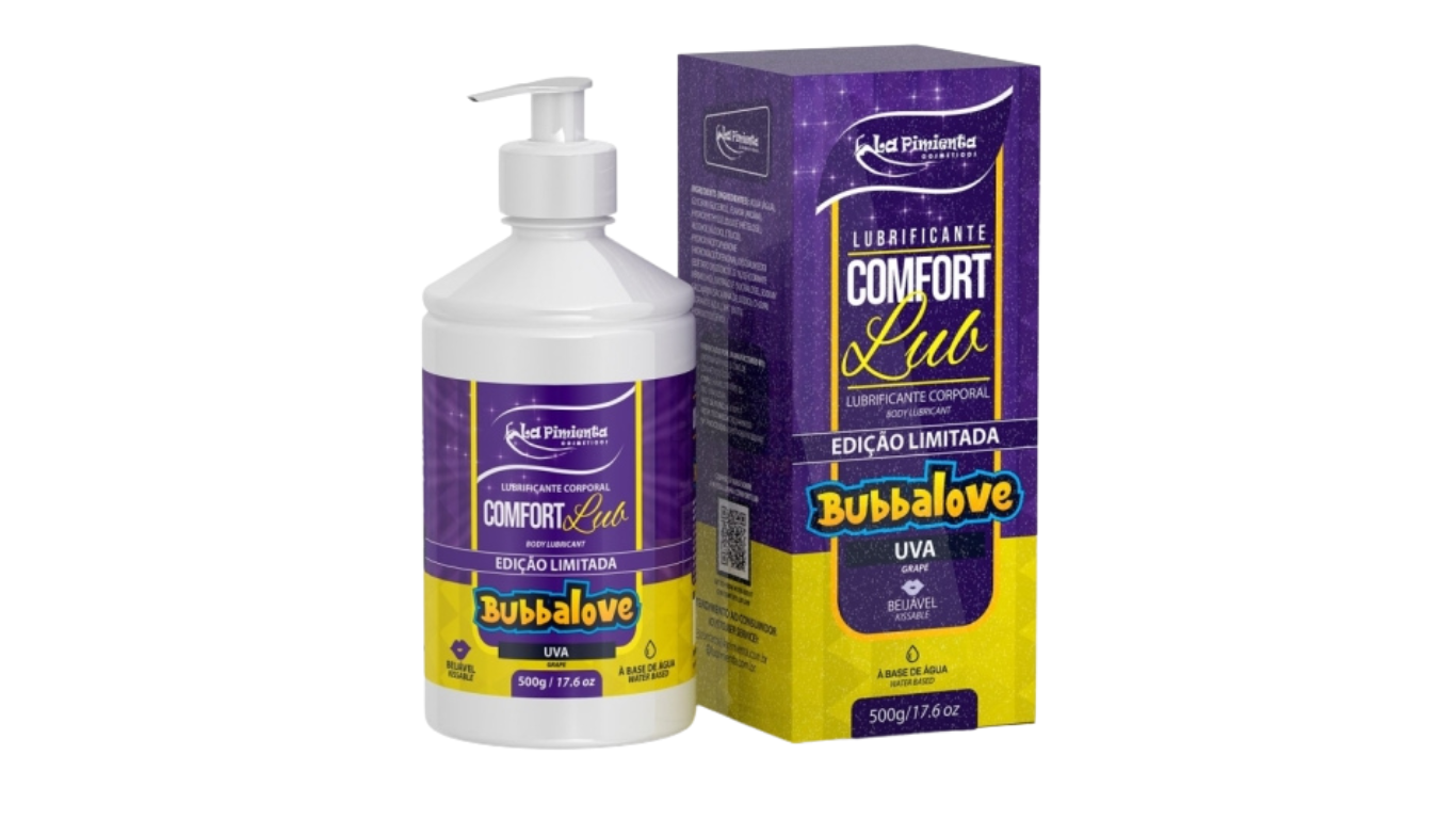 O COMFORT 500g BUBBALOVE é uma edição limitada do lubrificante COMFORT LUB 500g, trazendo o aroma clássico e afrodisíaco com um tamanho surpreendente.