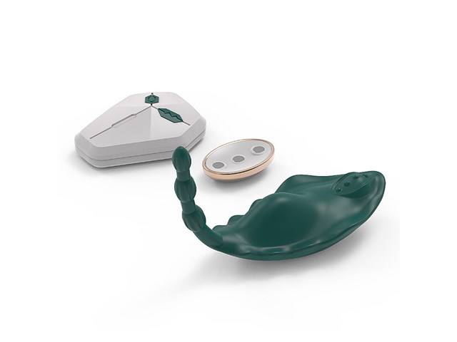 Vibrador de calcinha é um estimulador recarregável confeccionado em silicone, possui 9 modos de vibração via Bluetooth.