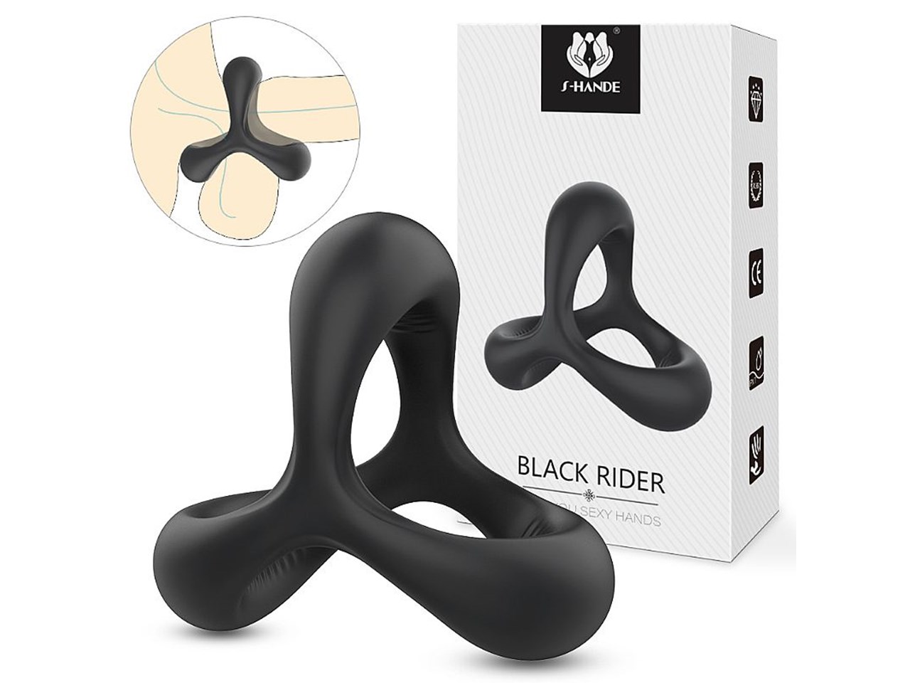 Modo de uso: Lubrifique bem seu pênis, coloque o anel na base, próximo a virilha.