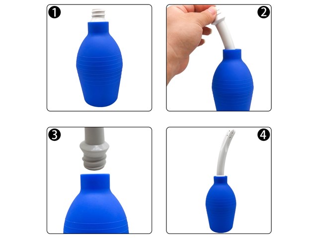 Insira o aplicador no ânus ou vagina e suavemente aperte a bomba.