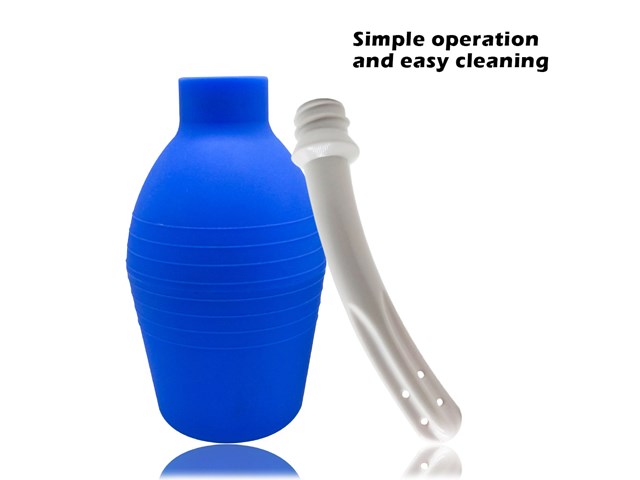 Ducha unissex para limpeza anal e vaginal, composta por 1 aplicador e bomba para sucção da água.
