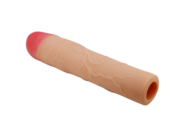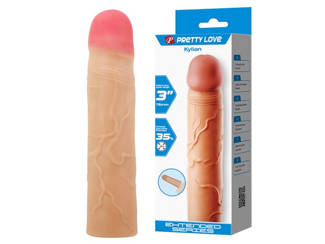 Kylian é uma capa incrivelmente realista, desenvolvida para criar uma sensação autêntica tanto por dentro quanto por fora. Oferece até 7,6 cm extras de comprimento e aproximadamente 35% de aumento na circunferência do pênis.