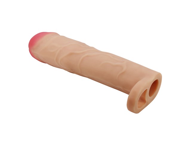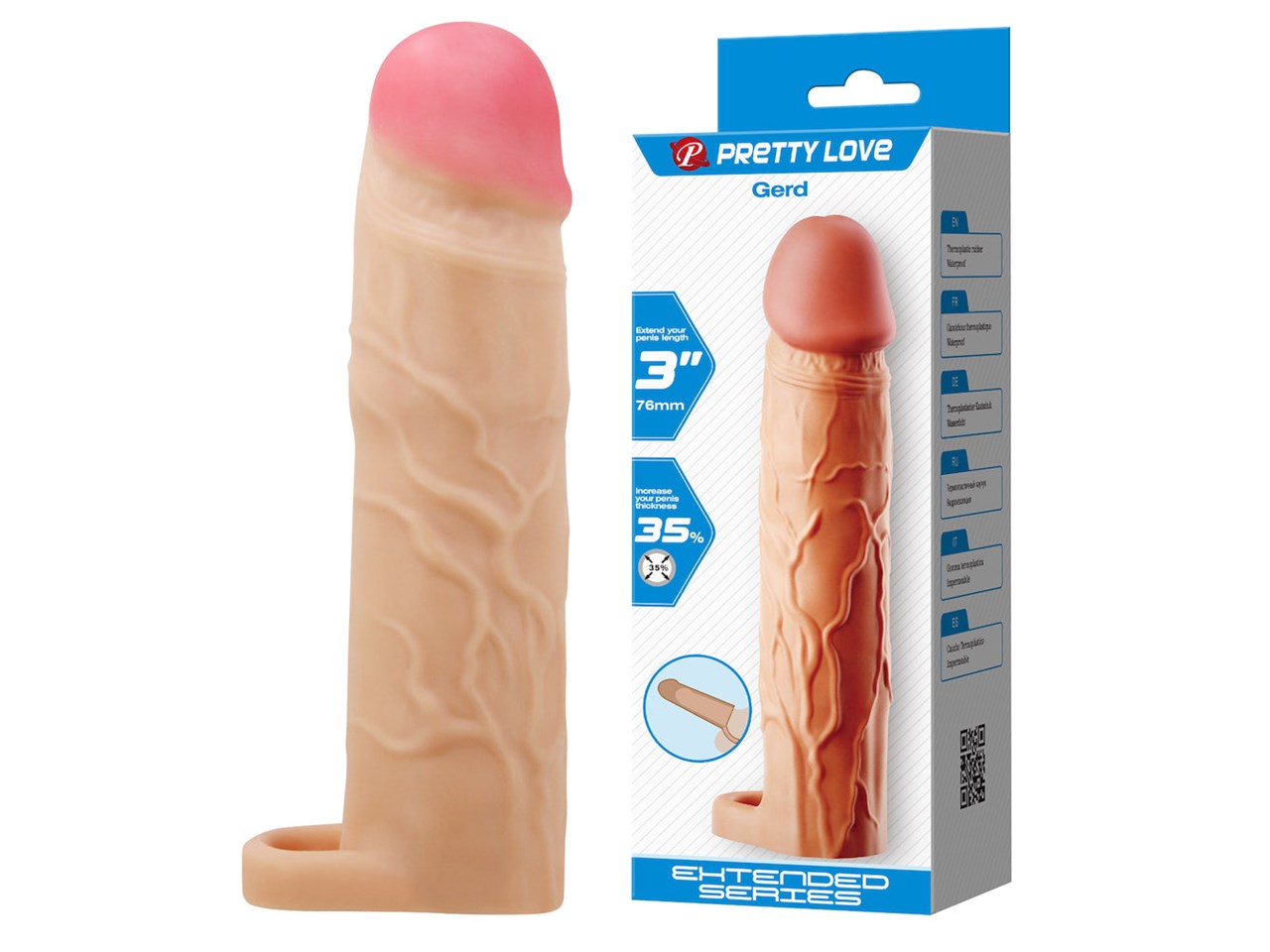 Gerd é uma capa incrivelmente realista, desenvolvida para criar uma sensação autêntica tanto por dentro quanto por fora. Oferece até 7,6 cm extras de comprimento e aproximadamente 35% de aumento na circunferência do pênis.