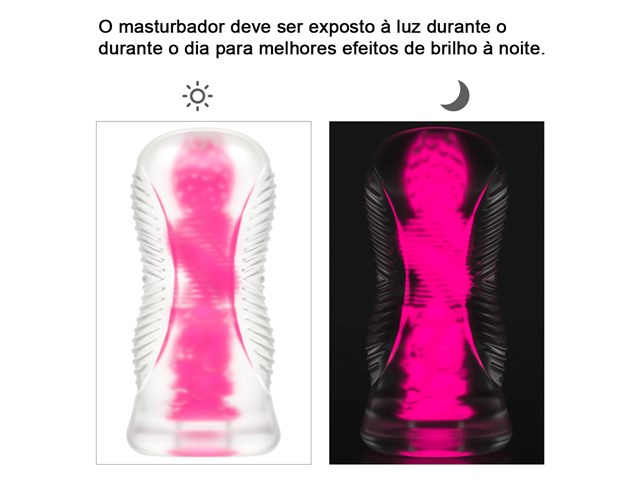 Este masturbador oferece muita diversão mesmo depois que as luzes se apagam, graças ao seu efeito fosforescente.