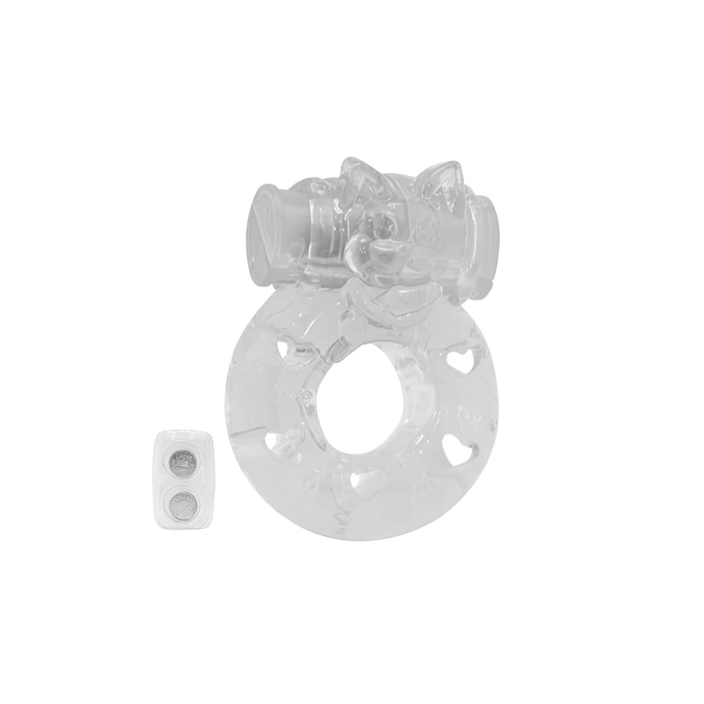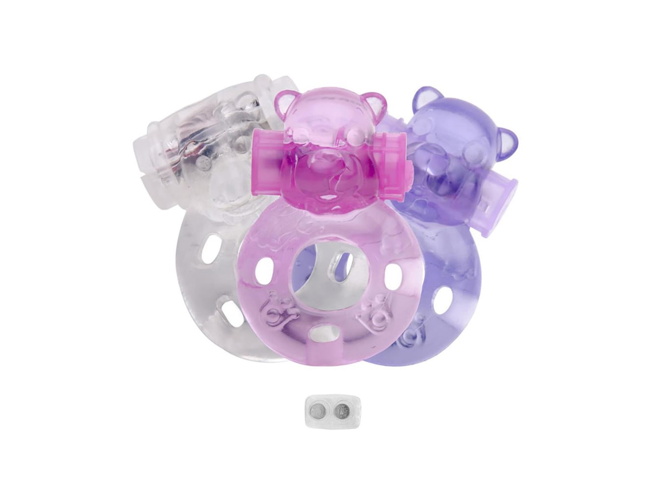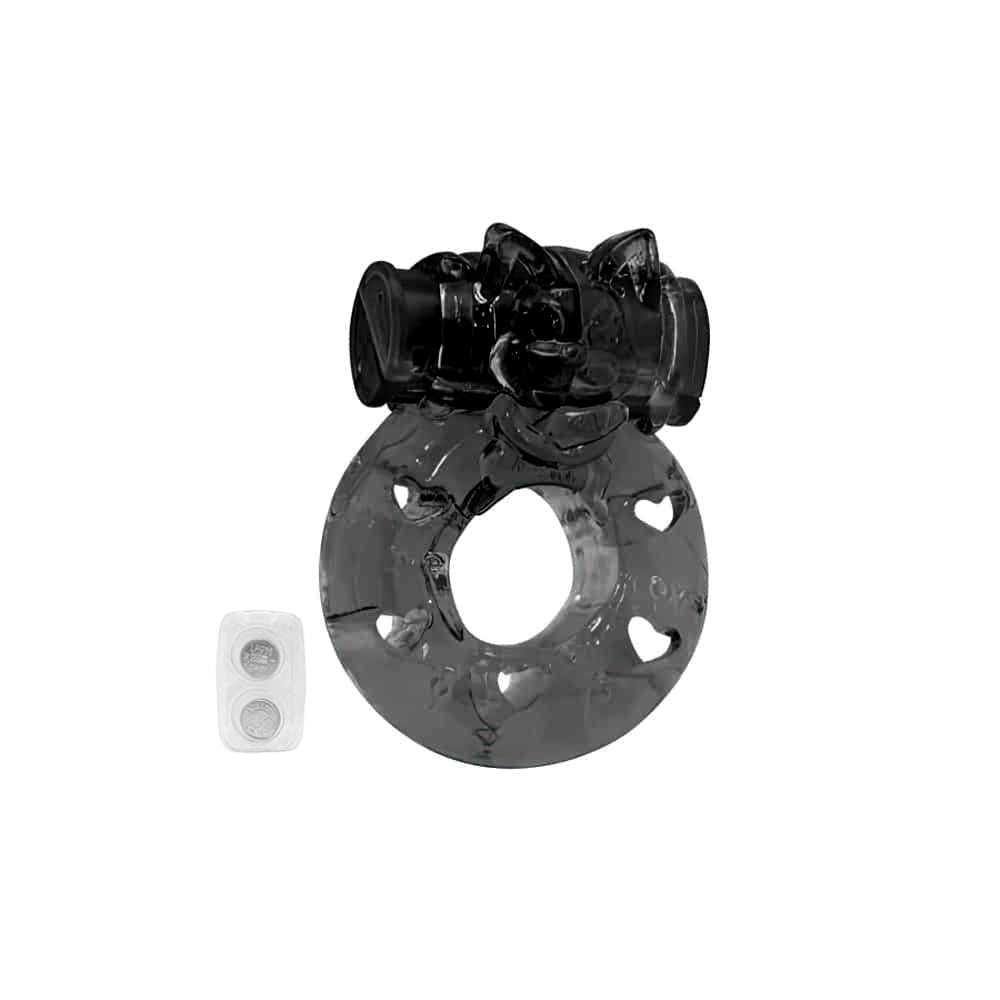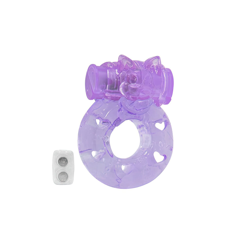 Anel peniano com estimulador em formato de bichinhos, equipado com cápsula vibratória para intensificar o prazer durante o uso.