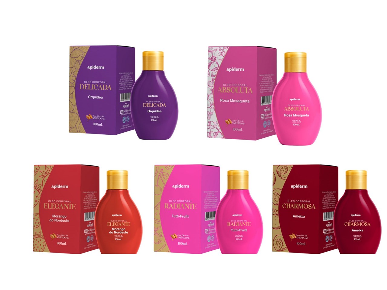 Óleo corporal Apinil com 100 ml, ideal para massagear e hidratar a pele, promovendo nutrição intensa e um toque macio e sedoso. Além de cuidar profundamente da pele, proporciona um brilho natural e radiante, realçando sua luminosidade e deixando-a com aspecto saudável.