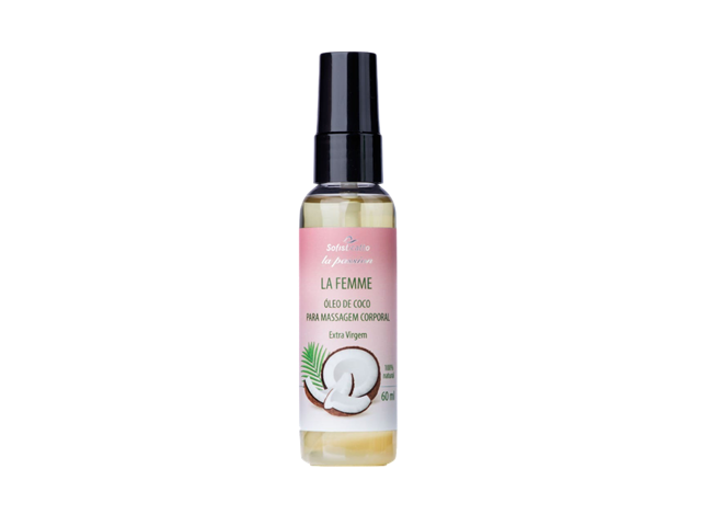 Óleo de coco La Femme - Tem ação antifúngica (desacelera o crescimento de fungos) a bactericida (dificulta a instação de bactérias na região vulvovaginal). Funciona também como um hidratante natural da região íntima e lubrificante nas relações sexuais. Ideal para mulheres que apresentam ressecamento no local. Aplique o produto na vagina e desfrute dos benefícios deste óleo.