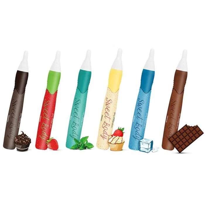 As Canetas Sweet Body da linha Sexy Imagination são recheadas com deliciosas coberturas que não mancham a pele. Foram desenvolvidas para desenhar no corpo. Ouse e deixe a imaginação fluir!